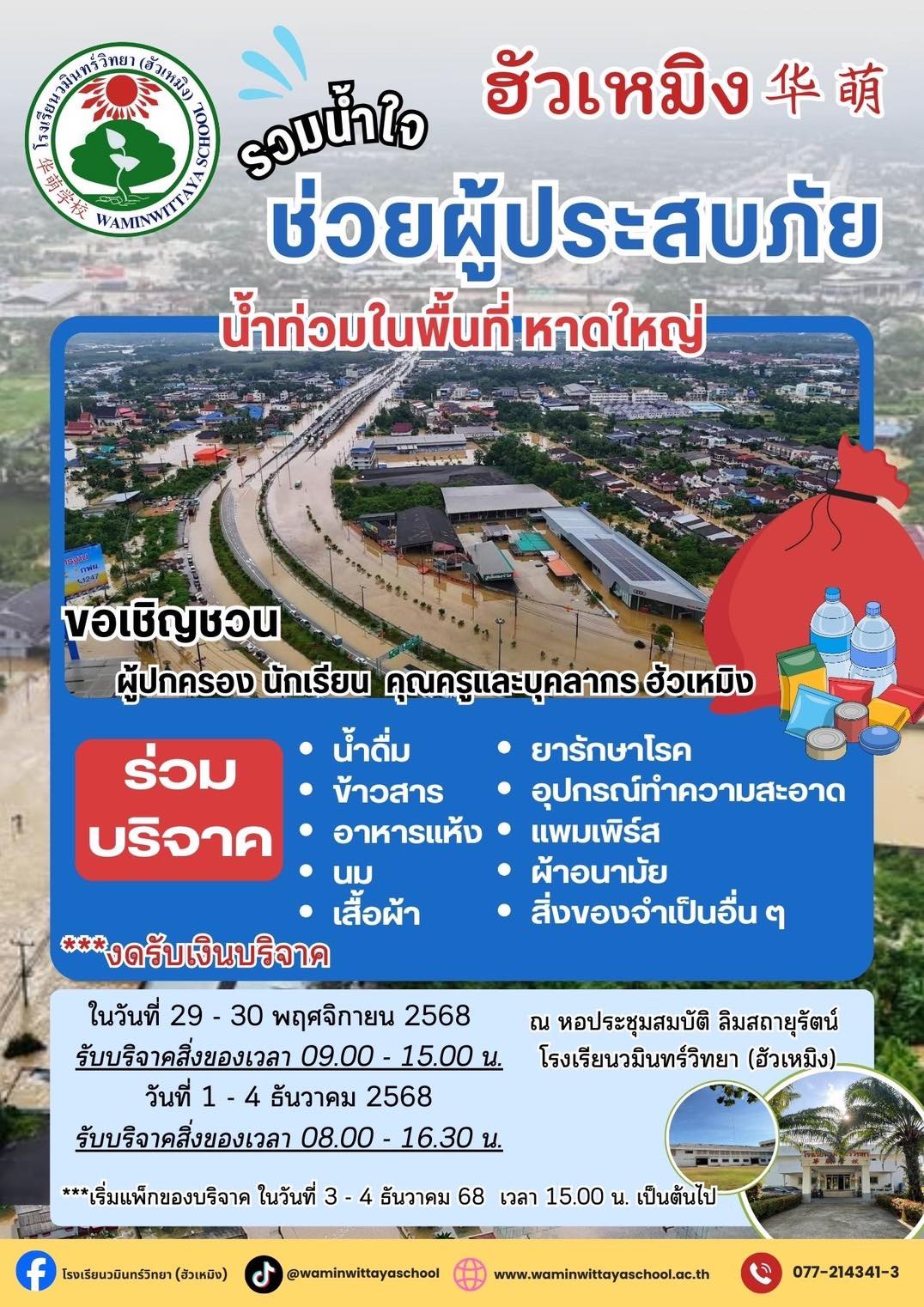 2 ธ.ค. 68 : ตัวแทนคุณครูและนักเรียน โรงเรียนวมินทร์วิทยา (ฮัวเหมิง) เข้าร่วมโครงการปรับปรุงภาวะโภชนาการและสุขภาพเด็กของสมเด็จพระกนิษฐษธิราชเจ้า กรมสมเด็จพระเทพรัตนราชสุดาฯ เจ้าฟ้ามหาจักรีสิรินธรฯ สยามบรมราชกุมารี วันที่ 2-3 ธ.ค. 2568 ณ โรงแรมวังใต้ อำเภอ