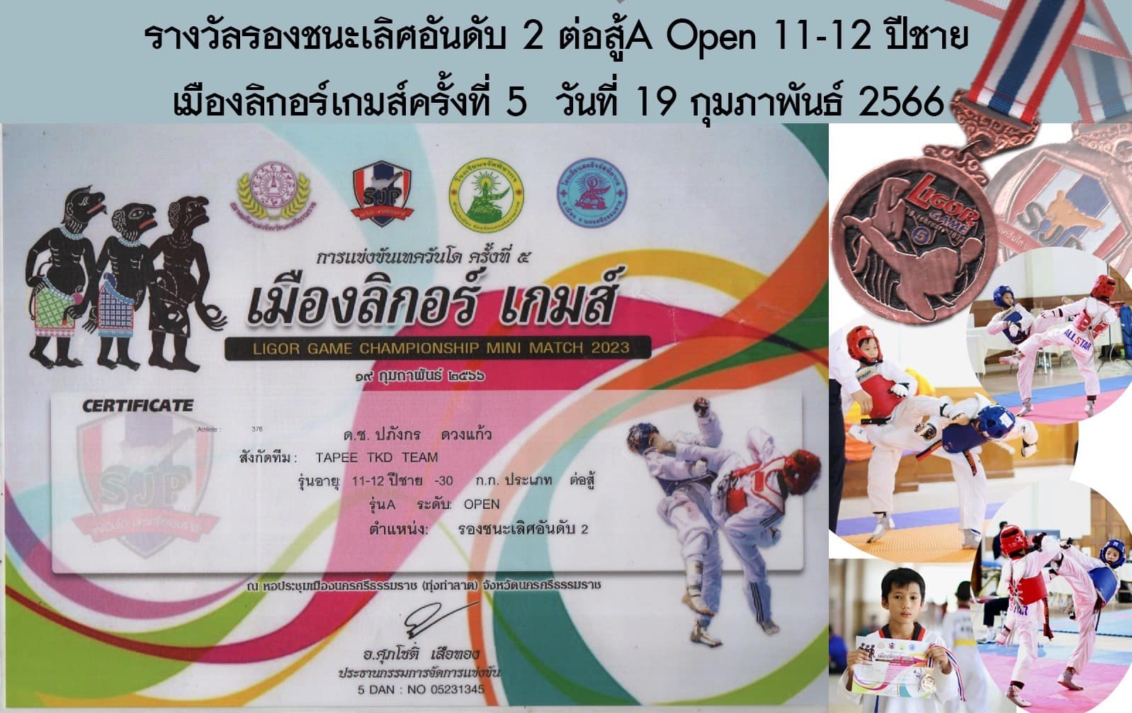 กับนักกีฬาคนเก่ง กับการแข่งขันเทควันโด้เมืองลิกอร์เกมส์ครั้งที่ 5 เมื่อวันอาทิตย์ ที่ 19 กุมภาพันธ์ 2566 ที่ผ่านมา