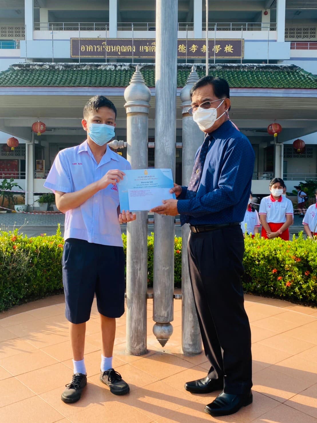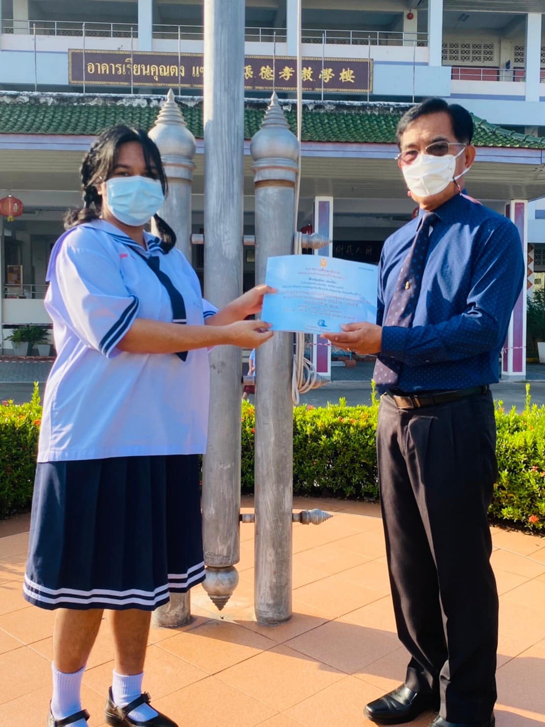 ท่านผู้อำนวยการ นายบัญญัติ สุขขัง มอบเกียรติบัตรและทุนการศึกษาให้นักเรียนที่ได้รับรางวัลการแข่งขันทักษะวิชาการและประกวดสิ่งประดิษฐ์นักเรียนโรงเรียนเอกชนครั้งที่ 6 ระดับประเทศและระดับภาคใต้