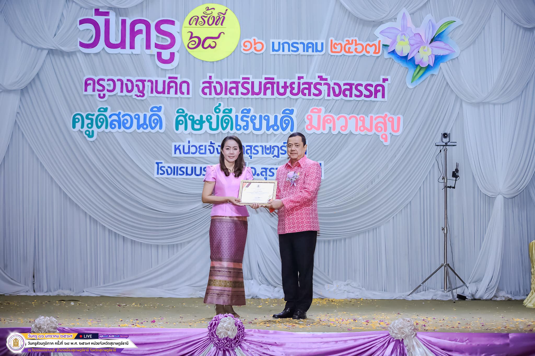 โรงเรียนวมินทร์วิทยา (ฮัวเหมิง) ขอแสดงความยินดีอย่างยิ่ง นายรังสรรค์ วัฒนพันธ์ และ นางกาหลง สอนประสม เนื่องในโอกาสได้รับรางวัล “ครูดีศรีสุราษฎร์”ในวันครูแห่งชาติ ครั้งที่ ๖๘ สำนักงานศึกษาธิการจังหวัดสุราษฎร์ธานี