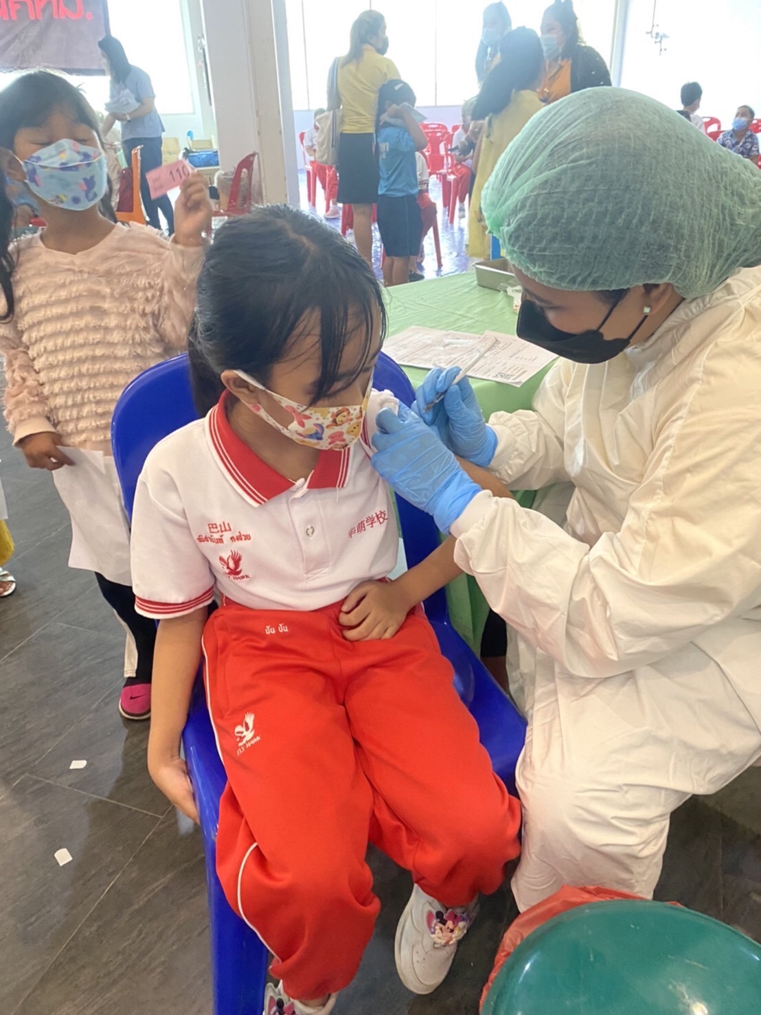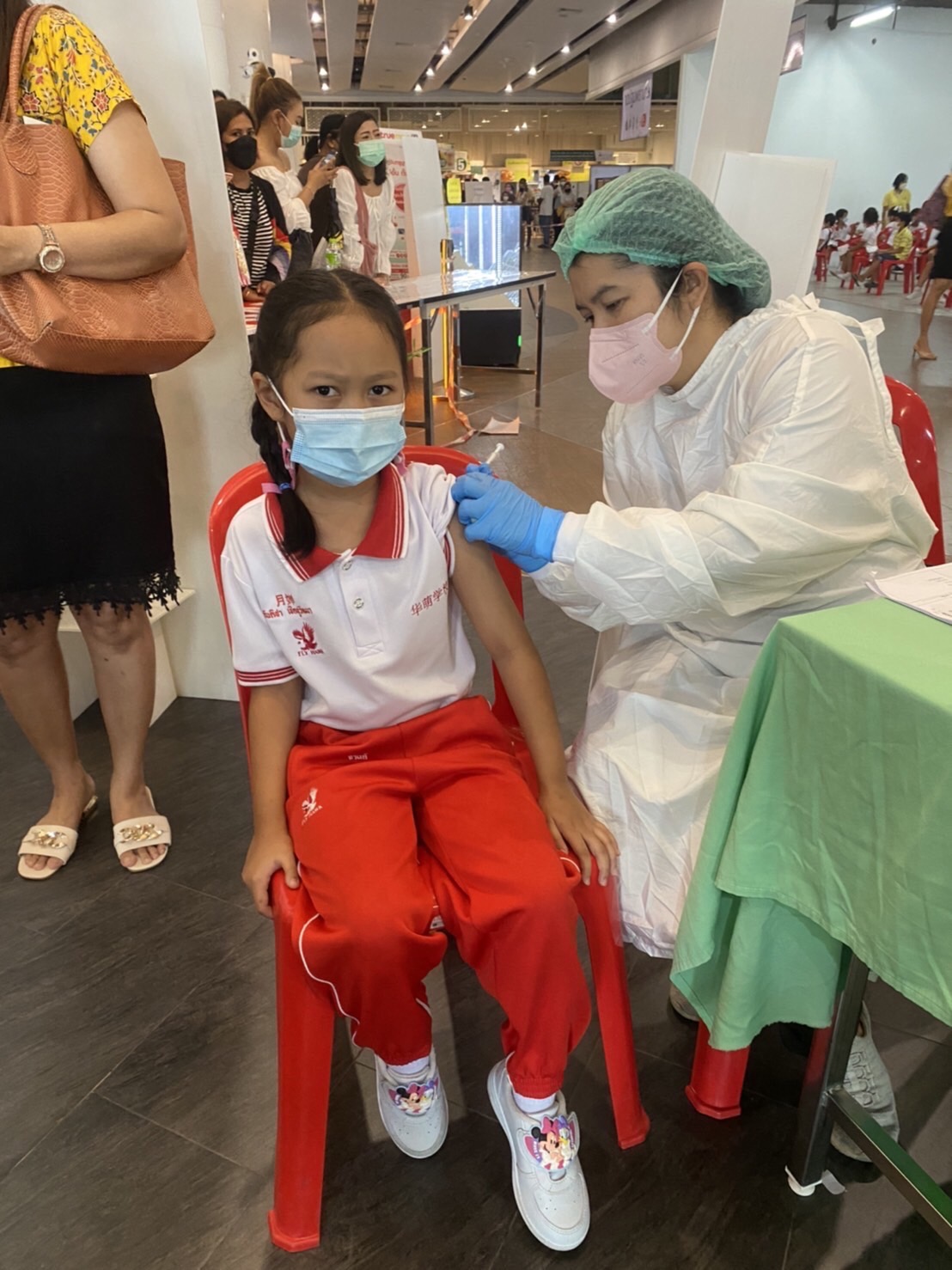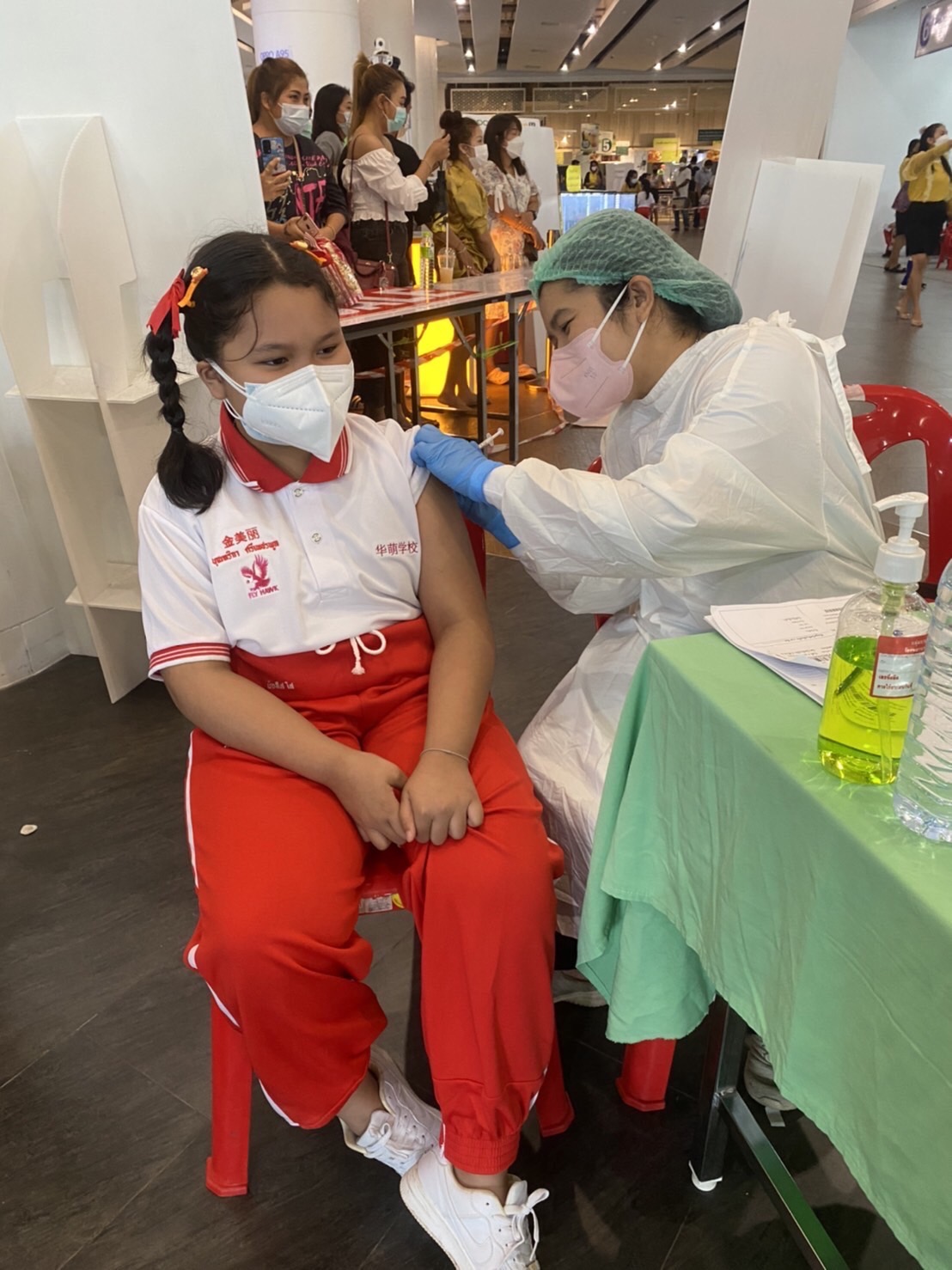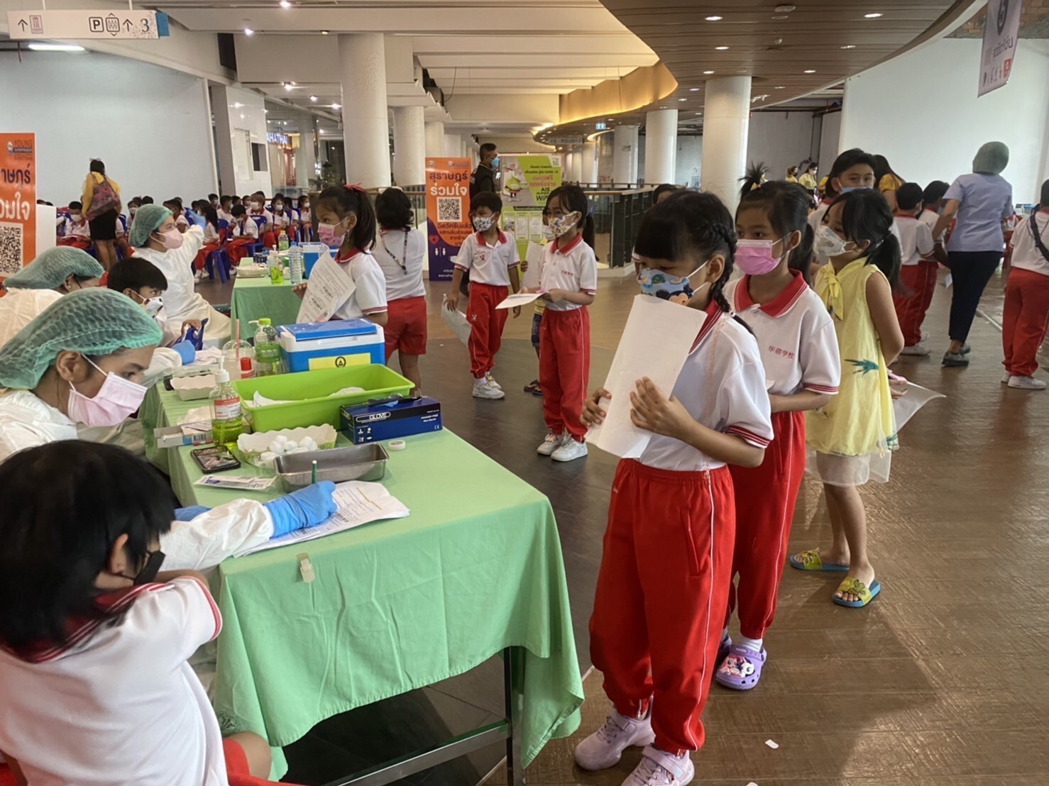 บรรยากาศการรับวัคซีนเข็มที่ 1 ของนักเรียนระดับชั้นอนุบาล 2 ถึงระดับชั้นประถมศึกษาปีที่ 5 ณ ห้างสหไทย พลาซ่า การ์เด้น สุราษฎร์ธานี