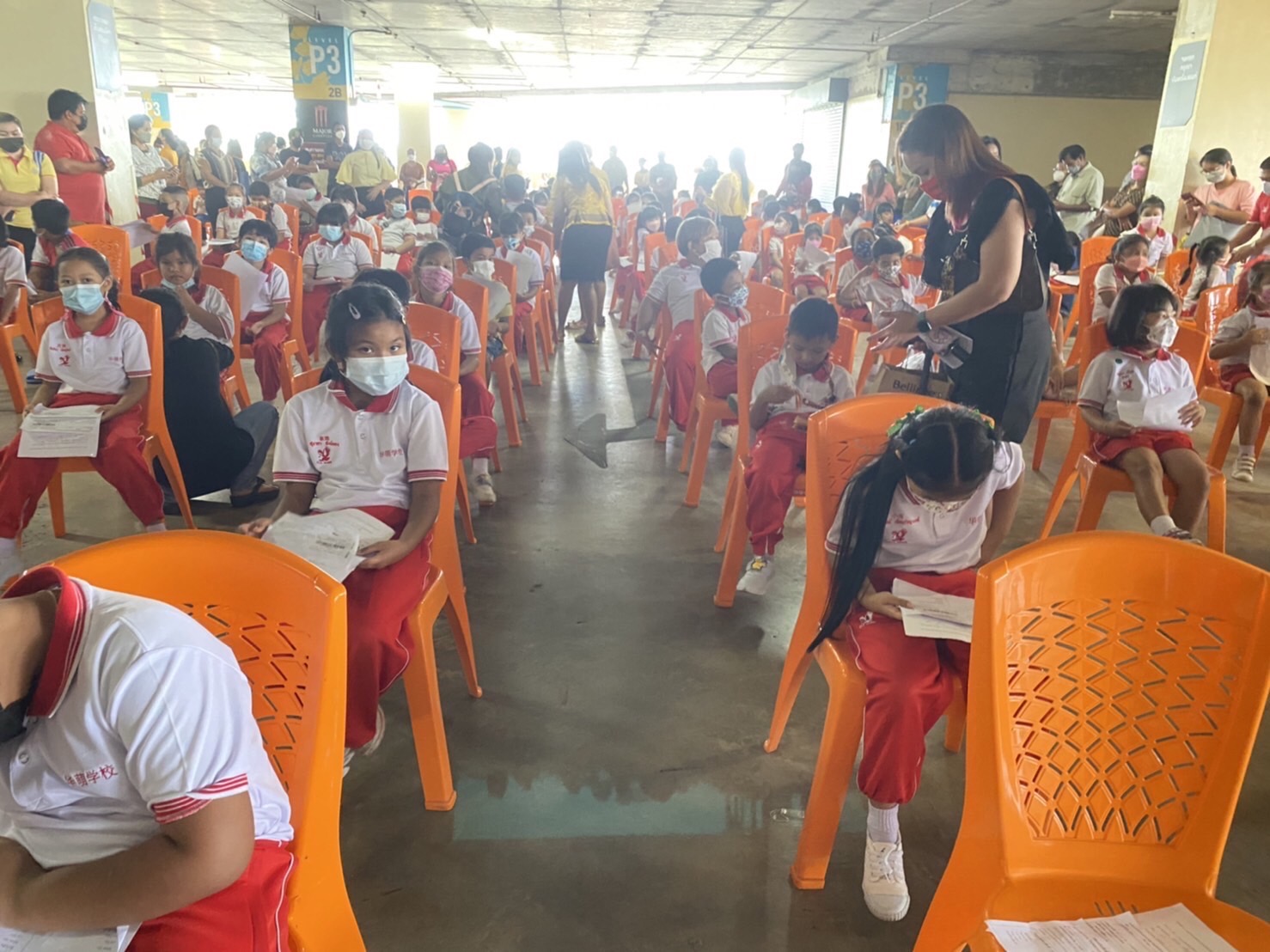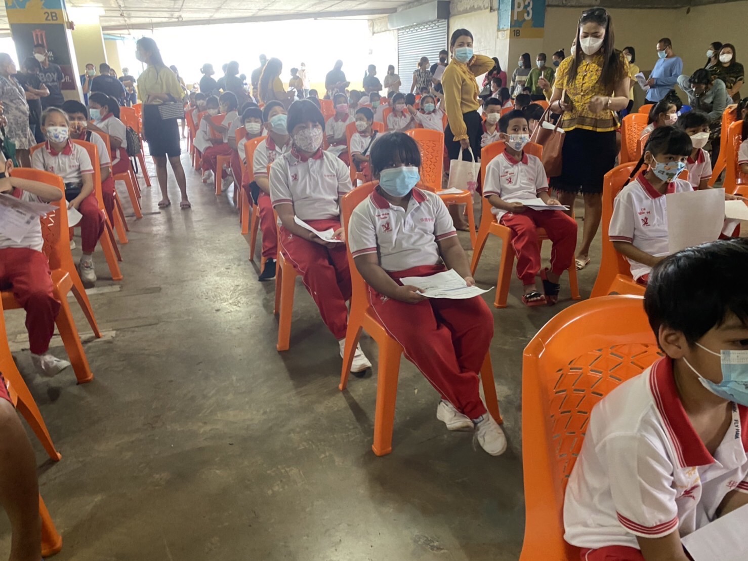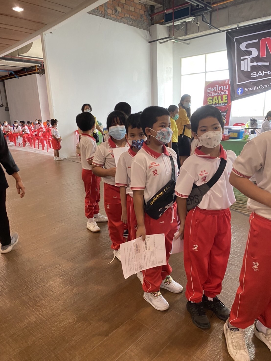บรรยากาศการรับวัคซีนเข็มที่ 1 ของนักเรียนระดับชั้นอนุบาล 2 ถึงระดับชั้นประถมศึกษาปีที่ 5 ณ ห้างสหไทย พลาซ่า การ์เด้น สุราษฎร์ธานี