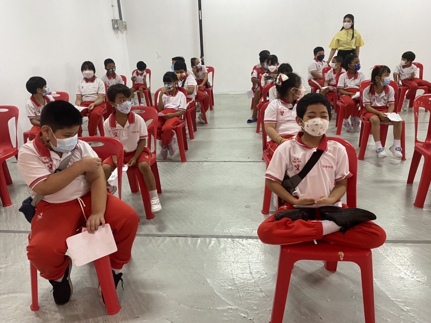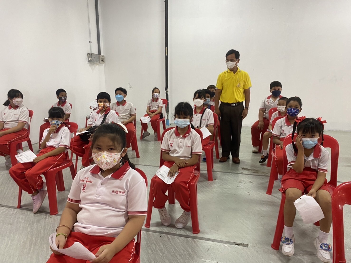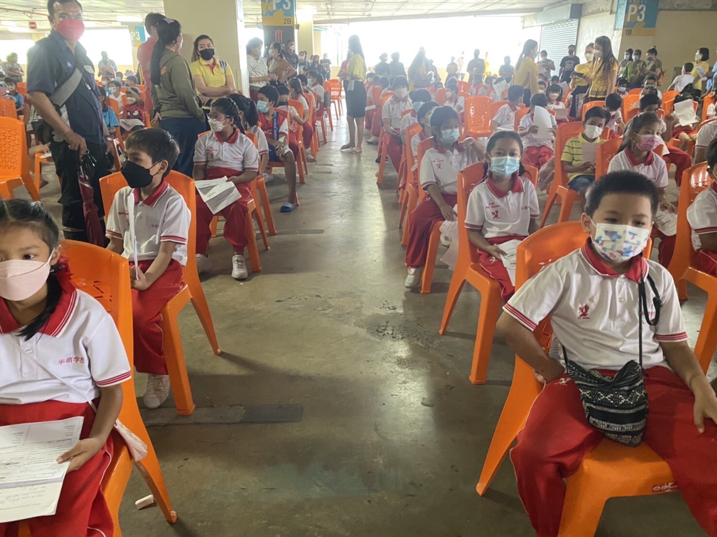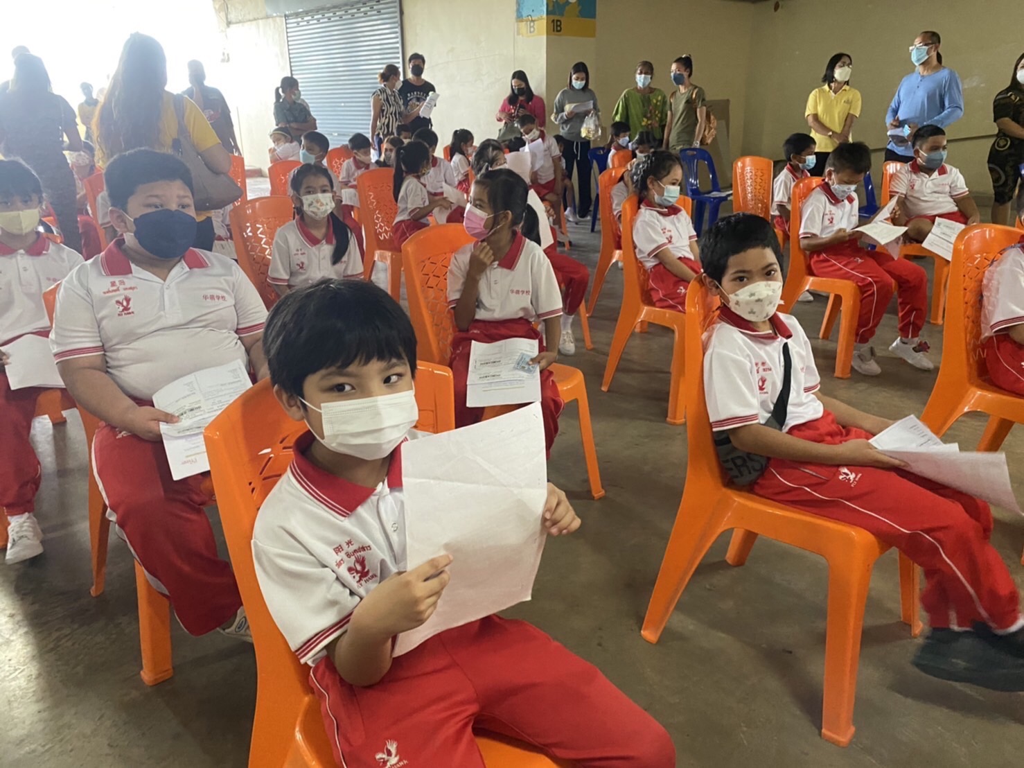 บรรยากาศการรับวัคซีนเข็มที่ 1 ของนักเรียนระดับชั้นอนุบาล 2 ถึงระดับชั้นประถมศึกษาปีที่ 5 ณ ห้างสหไทย พลาซ่า การ์เด้น สุราษฎร์ธานี