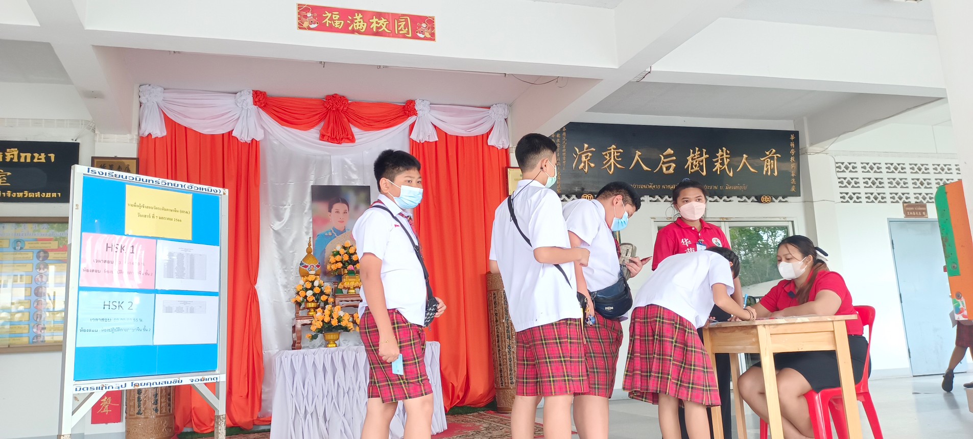 ภาพบรรยากาศการสอบวัดระดับภาษาจีน ปีการศึกษา 2565 สำหรับนักเรียนที่สอบ HSK1 และ HSK2