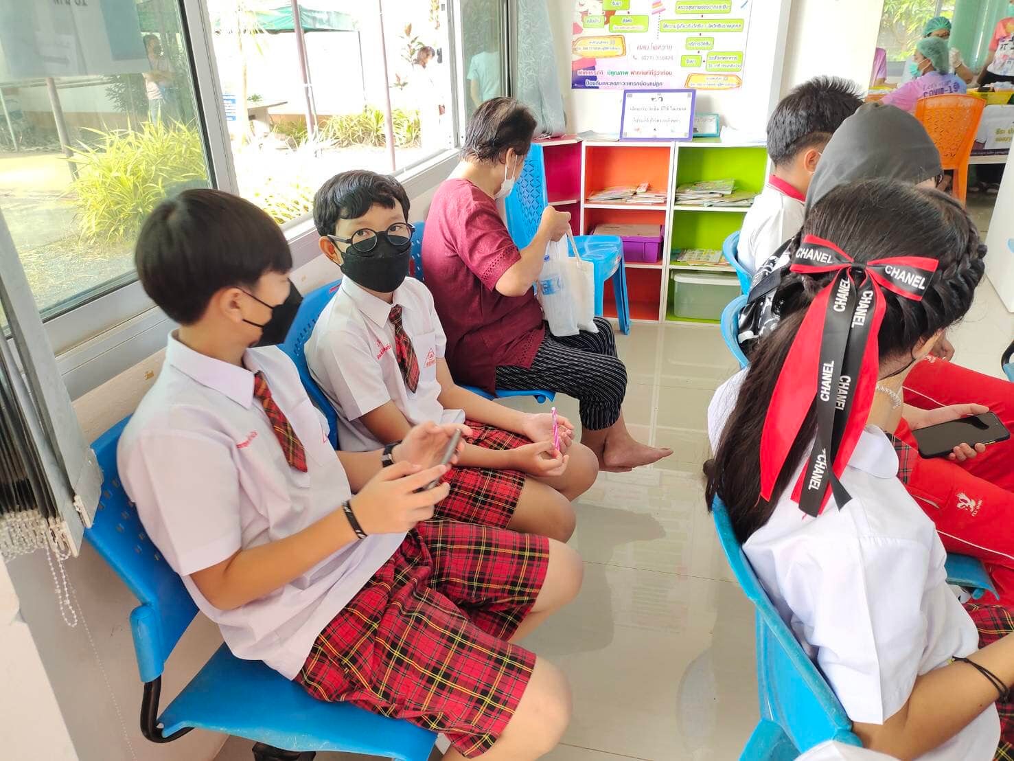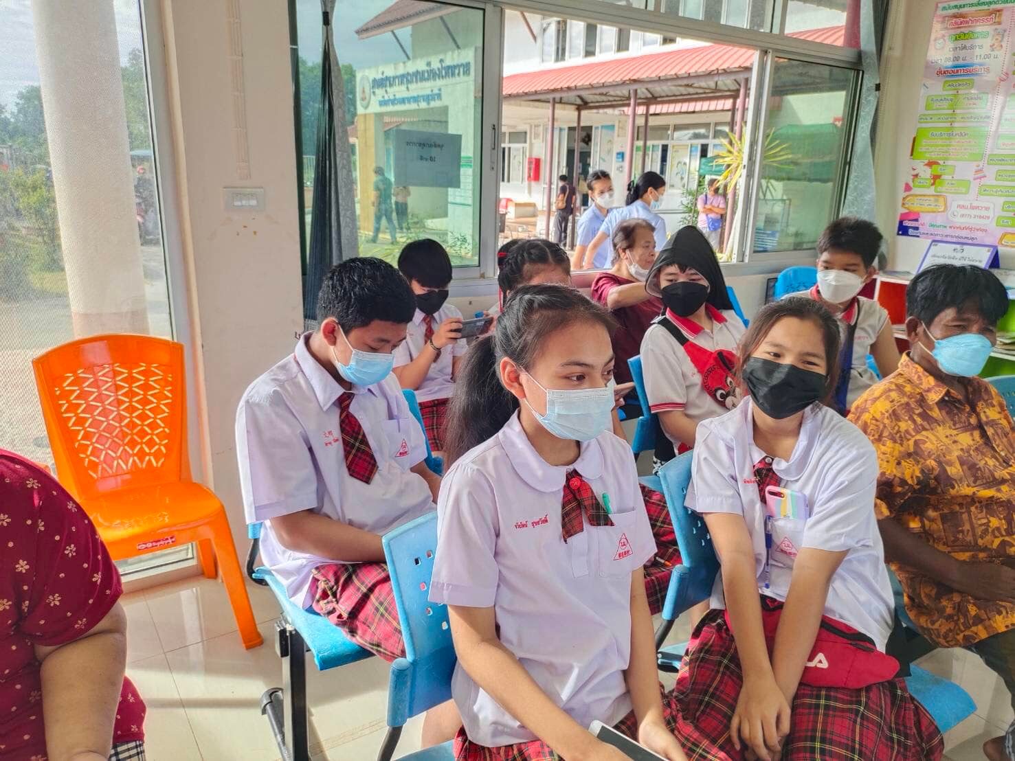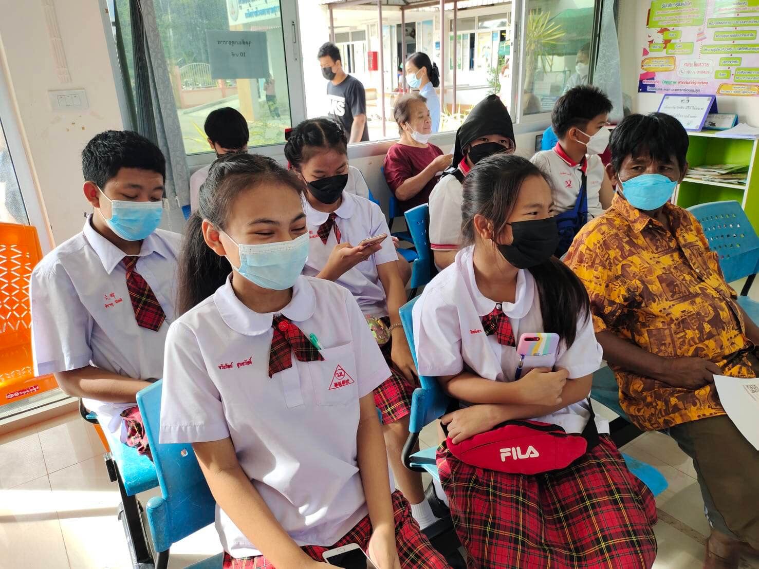 วันที่ 3 ก.พ. 2565 นำนักเรียนระดับชั้นประถมศึกษาปีที่ 6 อายุเกิน 12 ปี จำนวน 9 คน ไปฉีดวัคซีนป้องกันโควิด19 เข็มที่ 1 ณ ศูนย์สุขภาพชุมชนเมืองโพหวาย