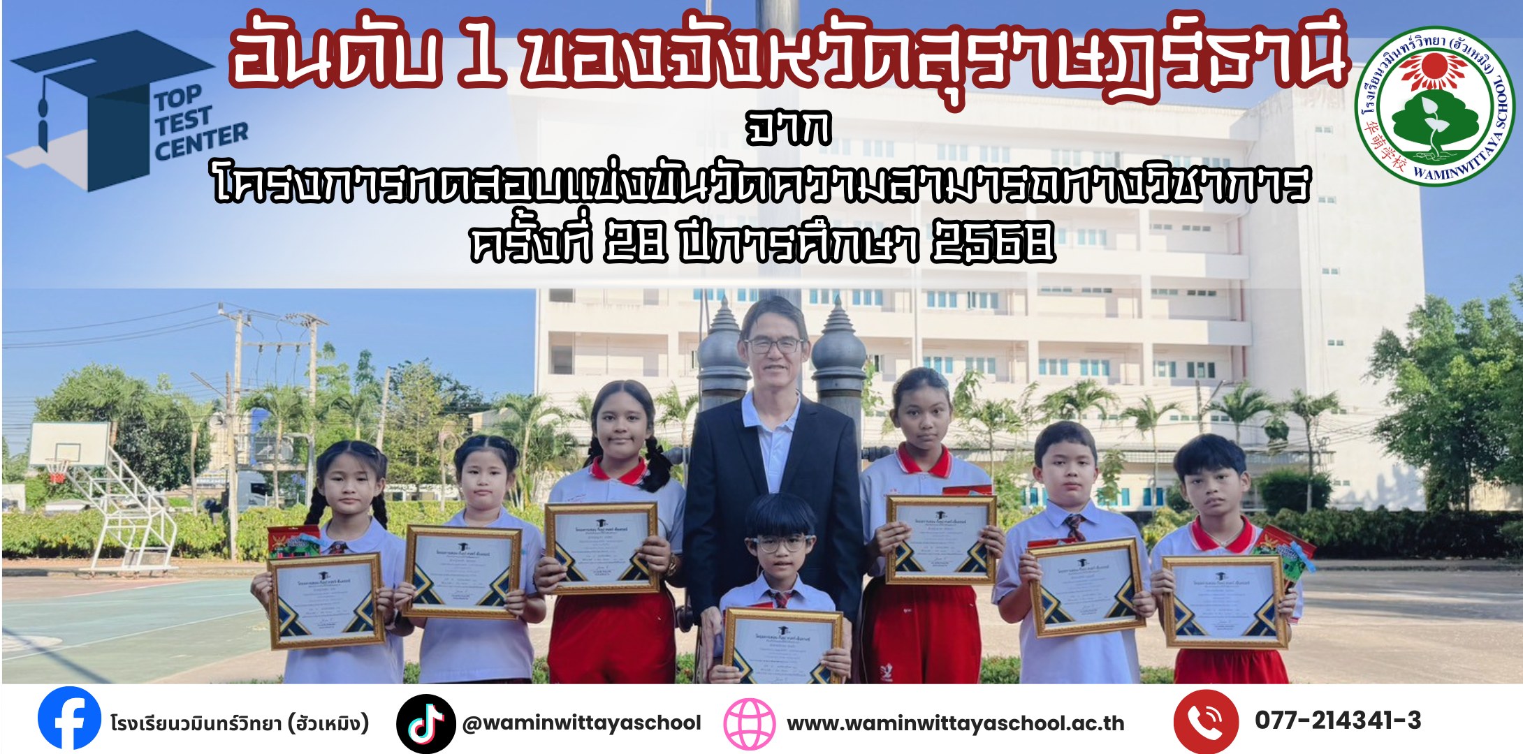 อันดับ 1 ของจังหวัดสุราษฎร์ธานี จากโครงการทดสอบความสามารถทางวิชาการครั้งที่ 28 ปีการศึกษา 2568