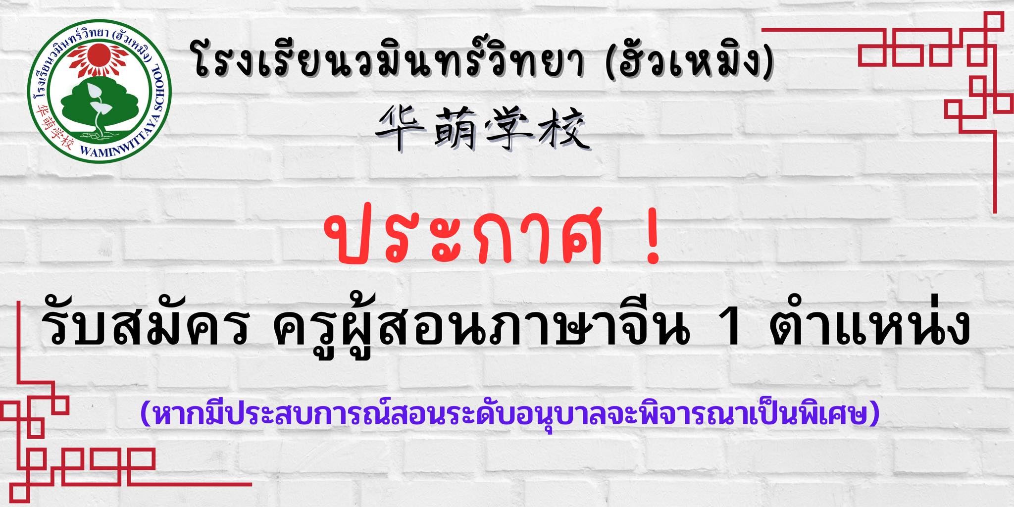 โรงเรียนวมินทร์วิทยา (ฮัวเหมิง) รับสมัครคุณครูภาาาจีน 1 อัตรา ด่วน!!!!!!