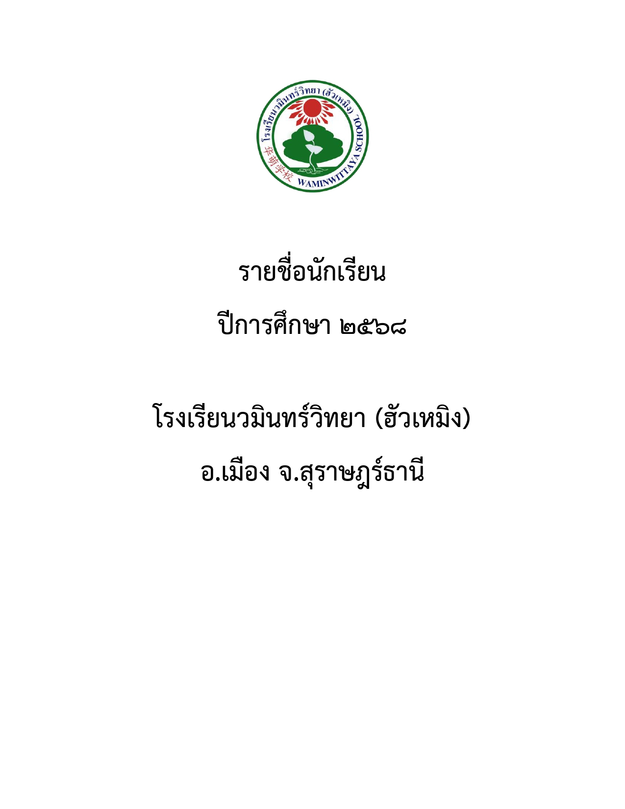 ประกาศรายชื่อนักเรียน ปีการศึกษา ๒๕๖๘