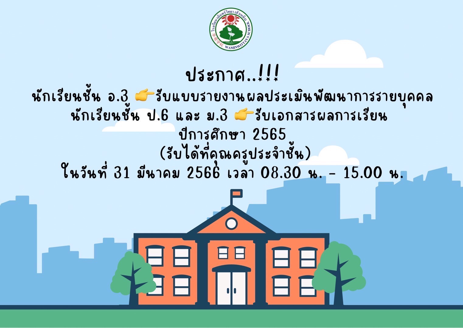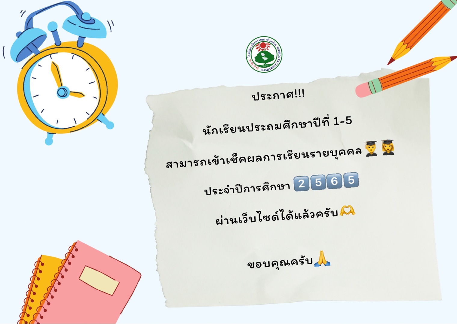 ประกาศผลการเรียนรายบุคคล ปีการศึกษา 2565 ระดับชั้นประถมศึกษาปีที่ 1-5 แล้ว..!!!!!