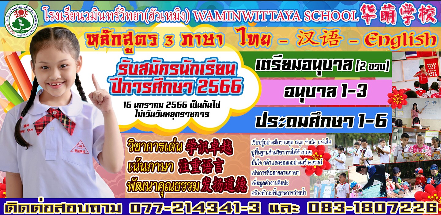 โรงเรียนวมินทร์วิทยา (ฮัวเหมิง) เปิดรับสมัครนักเรียนในภาคเรียนที่ 2 ปีการศึกษา 2565 ตั้งแต่ระดับเตรียมอนุบาล-ป.6