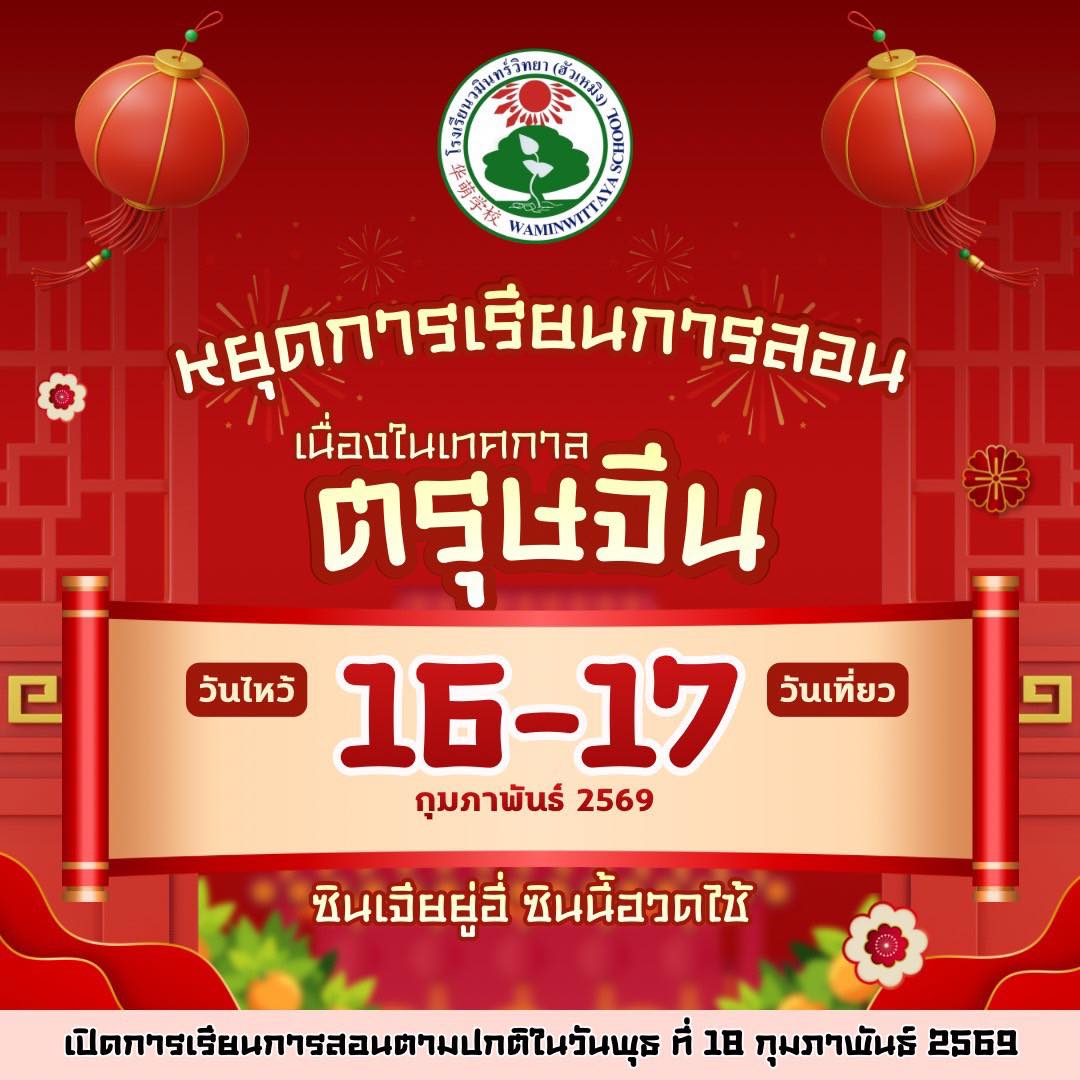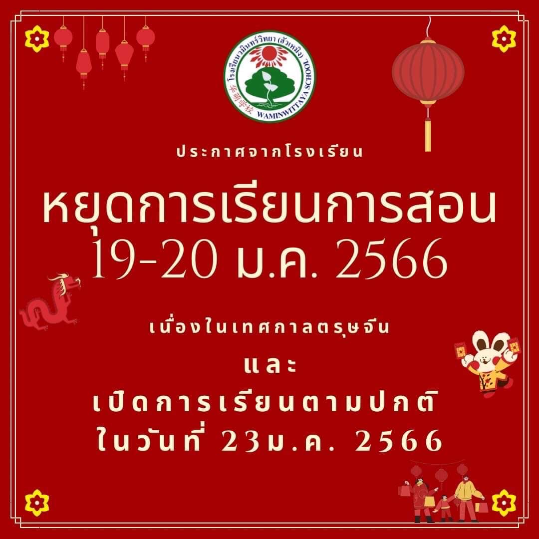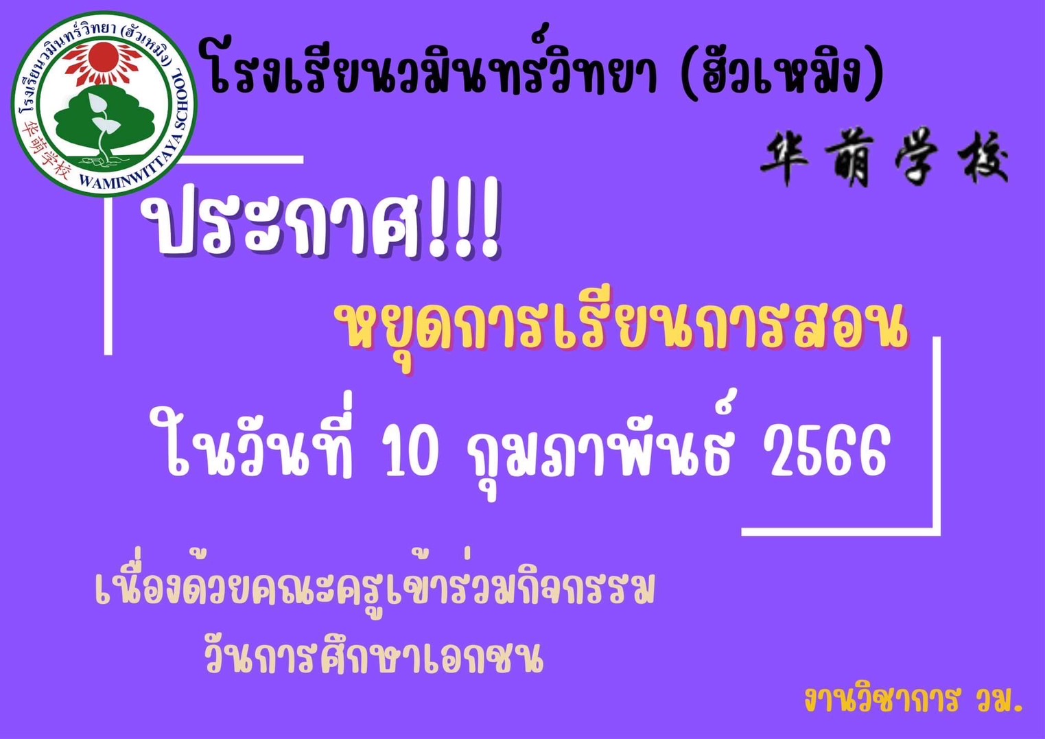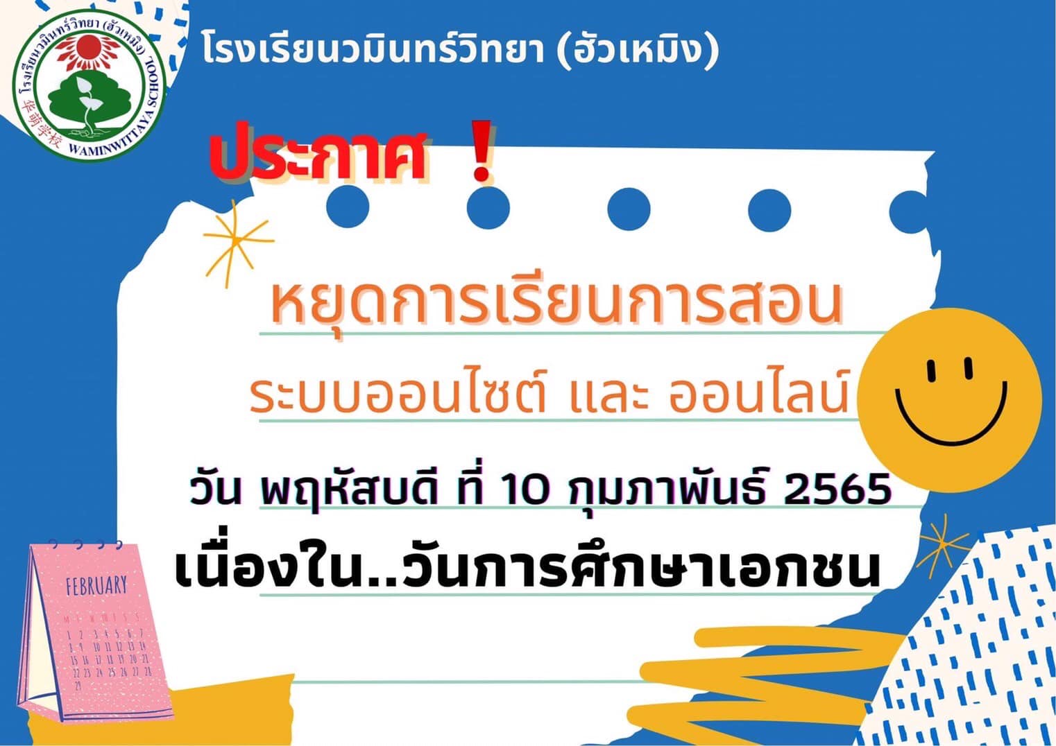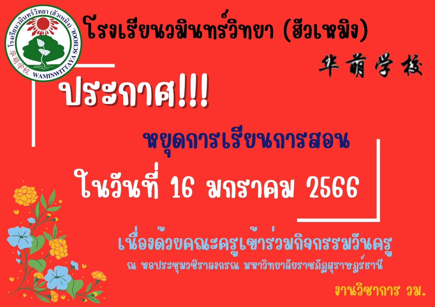 ประชาสัมพันธ์วันหยุด วันที่ 16 กุมภาพันธ์ พ.ศ. 2565 ณ โรงเรียนวมินทร์วิทยา (ฮัวเหมิง)