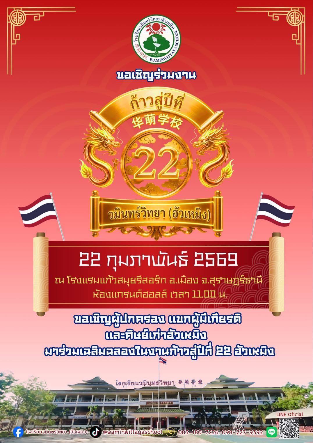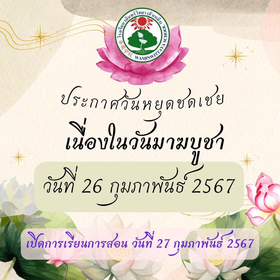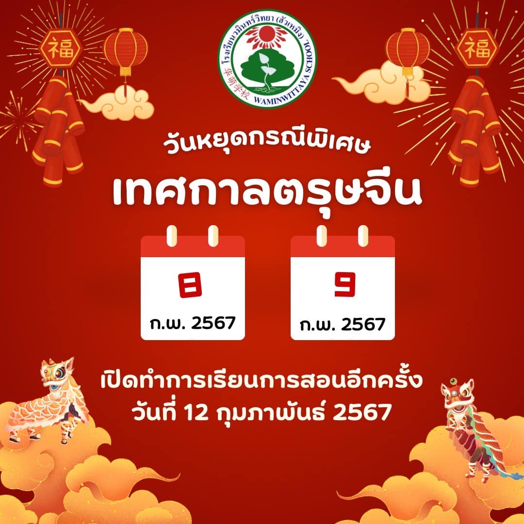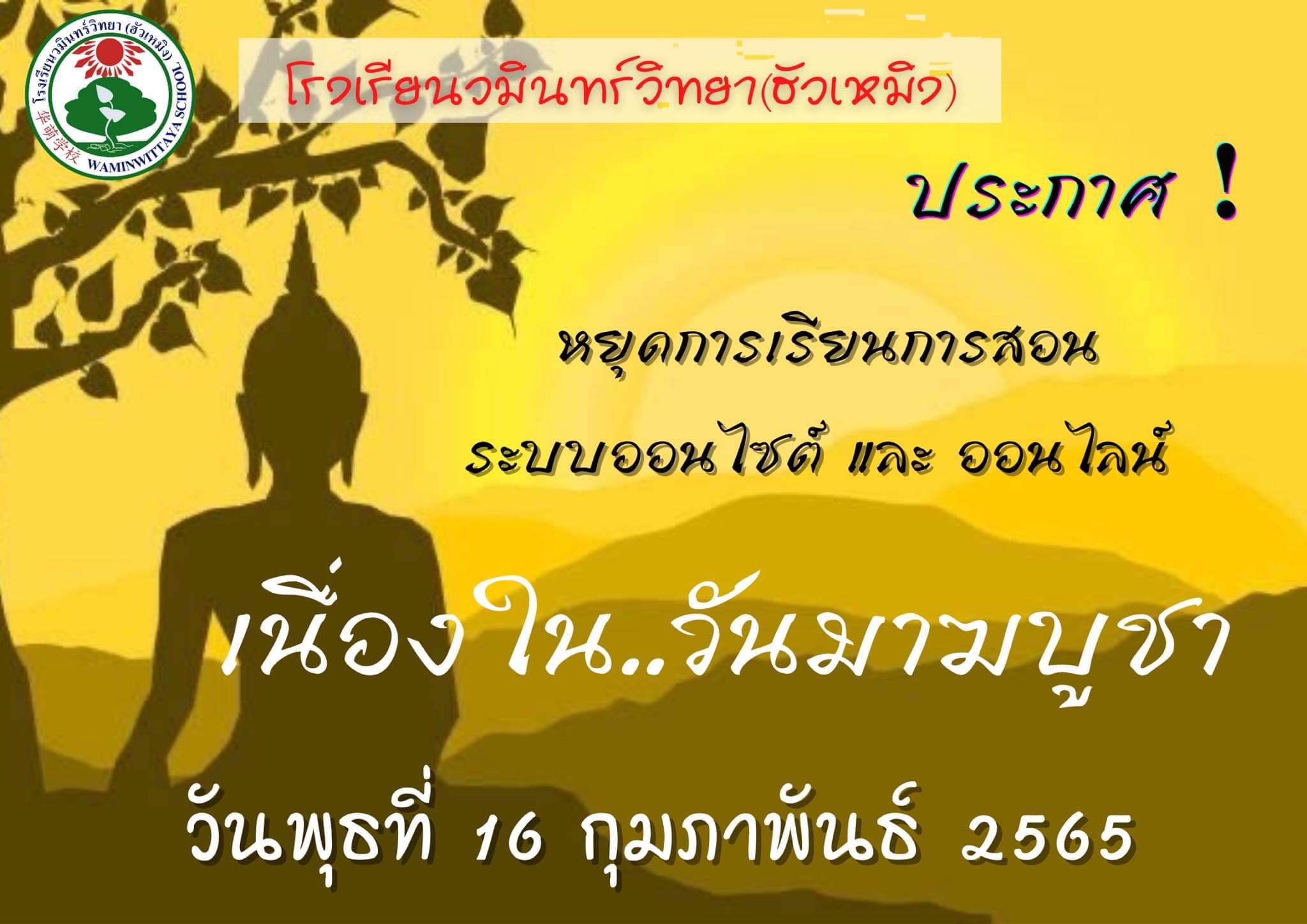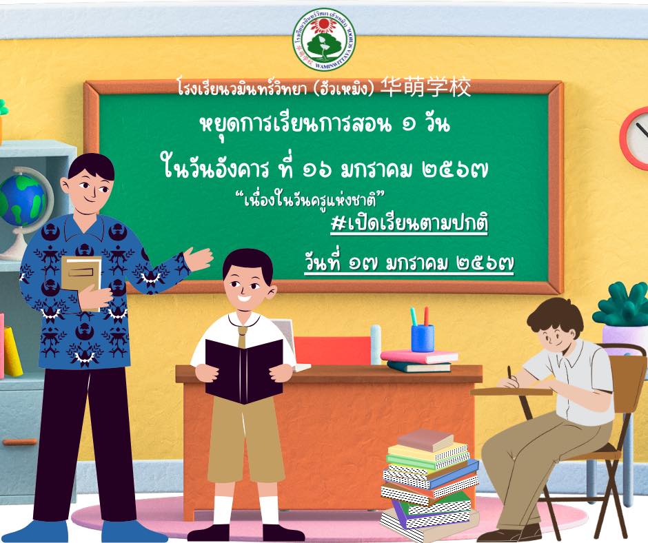 ประชาสัมพันธ์วันหยุด วันที่ 16 กุมภาพันธ์ พ.ศ. 2565 ณ โรงเรียนวมินทร์วิทยา (ฮัวเหมิง)
