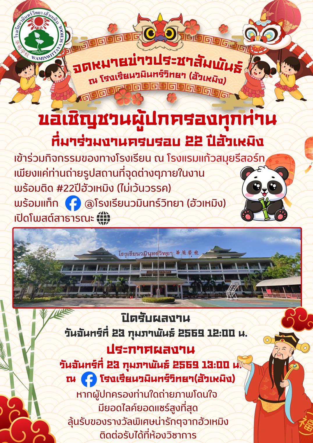 ขออนุญาตประชาสัมพันธ์ถึงผู้ปกครองที่ไปร่วมงาน 22 ปีฮัวเหมิงในวันอาทิตย์นี้ สามารถถ่ายภาพจุดต่าง ๆ บริเวณงานและติดแฮชแท็ก #22ปีฮัวเหมิง