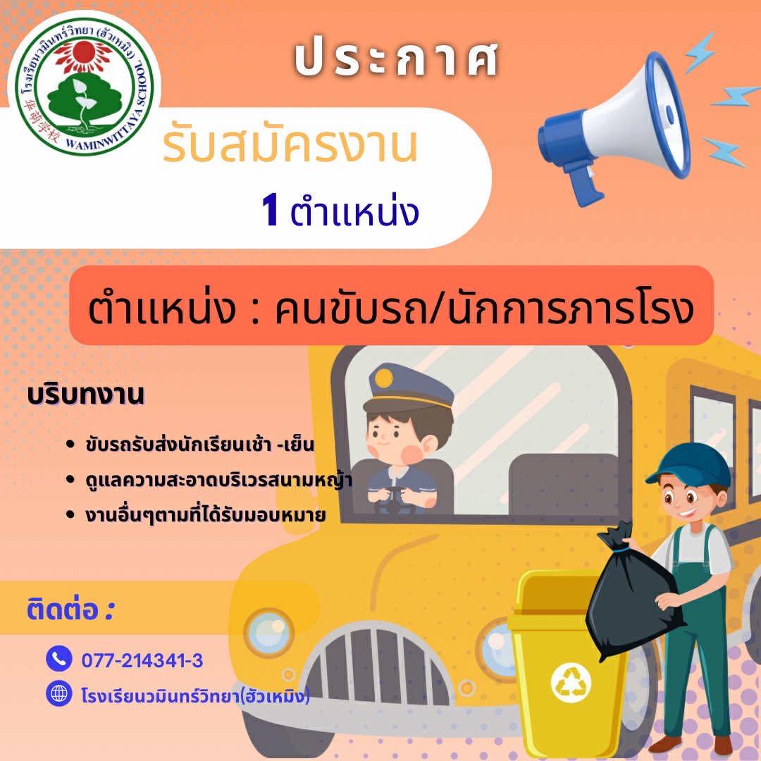 ประกาศ..!!! รับสมัครงาน 1 ตำแหน่ง ตำแหน่ง : คนขับรถ/นักการภารโรง บริบทงาน ตามรายละเอียดด้านล่างเลยครับ..