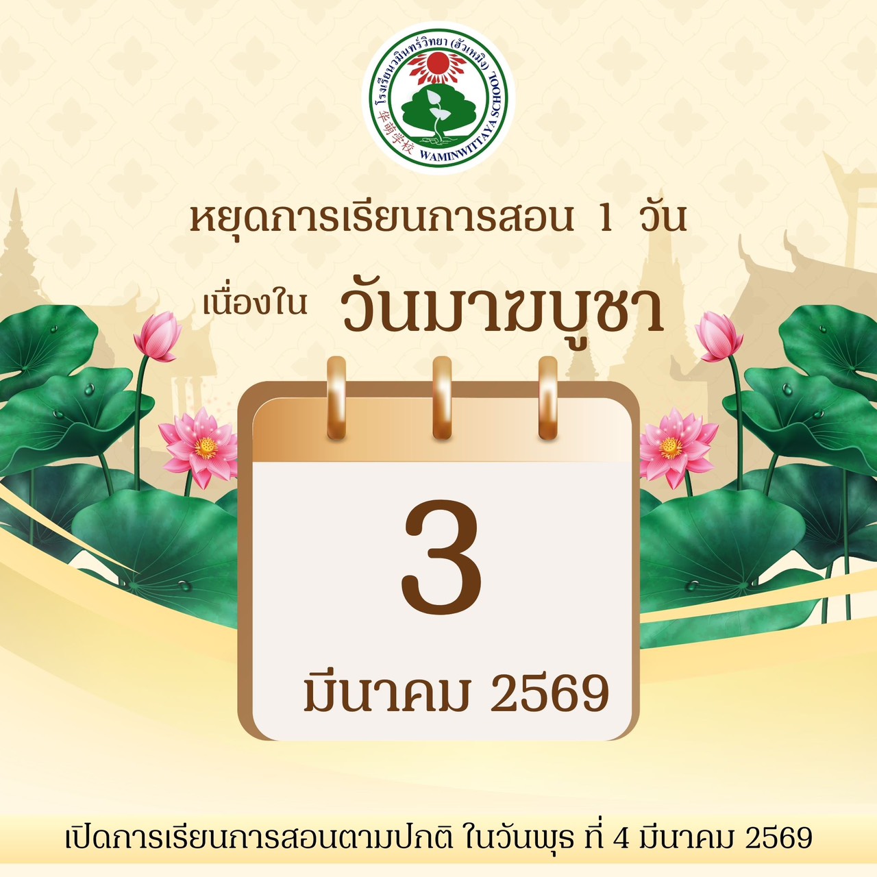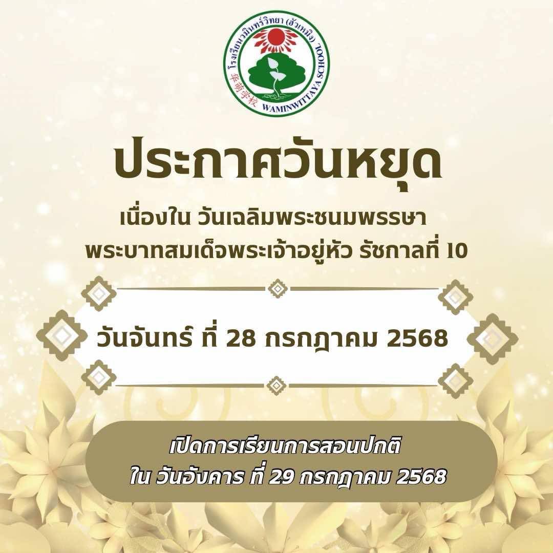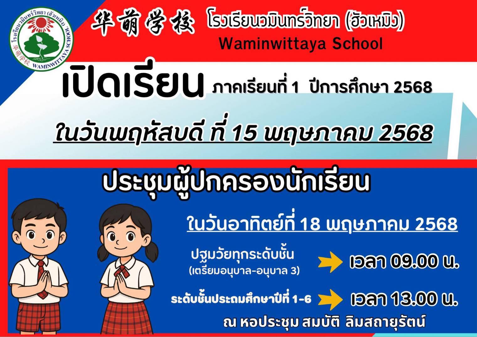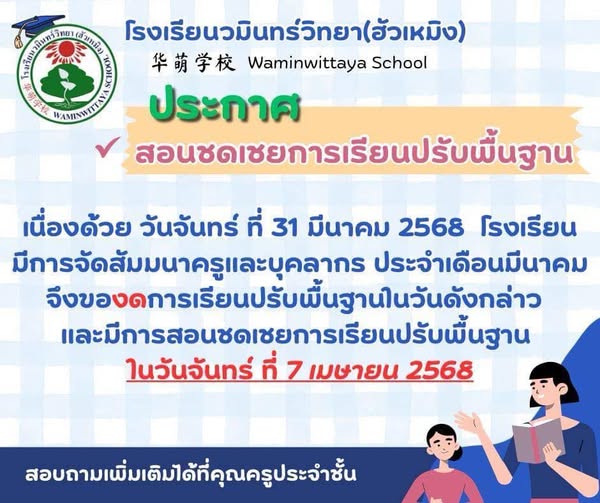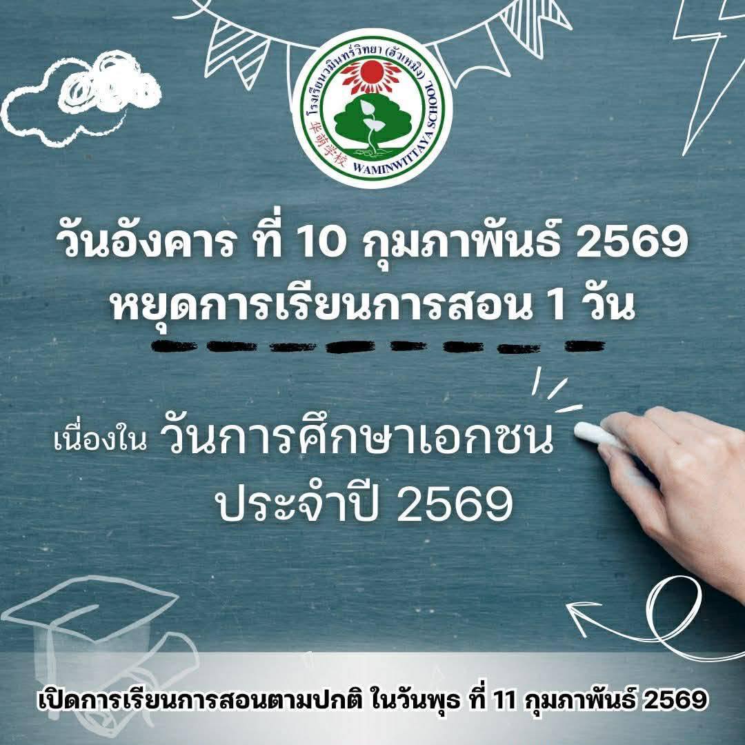 #ประกาศจากโรงเรียนวมินทร์วิทยา (ฮัวเหมิง) หยุดการเรียนการสอน ในวันที่ 2-3 มิถุนายน 2568