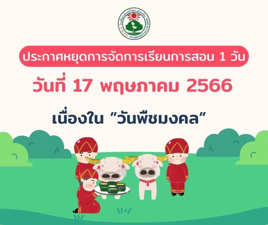 ประกาศวันหยุดการเรียนการสอน วันที่ 17 พ.ค. 2566