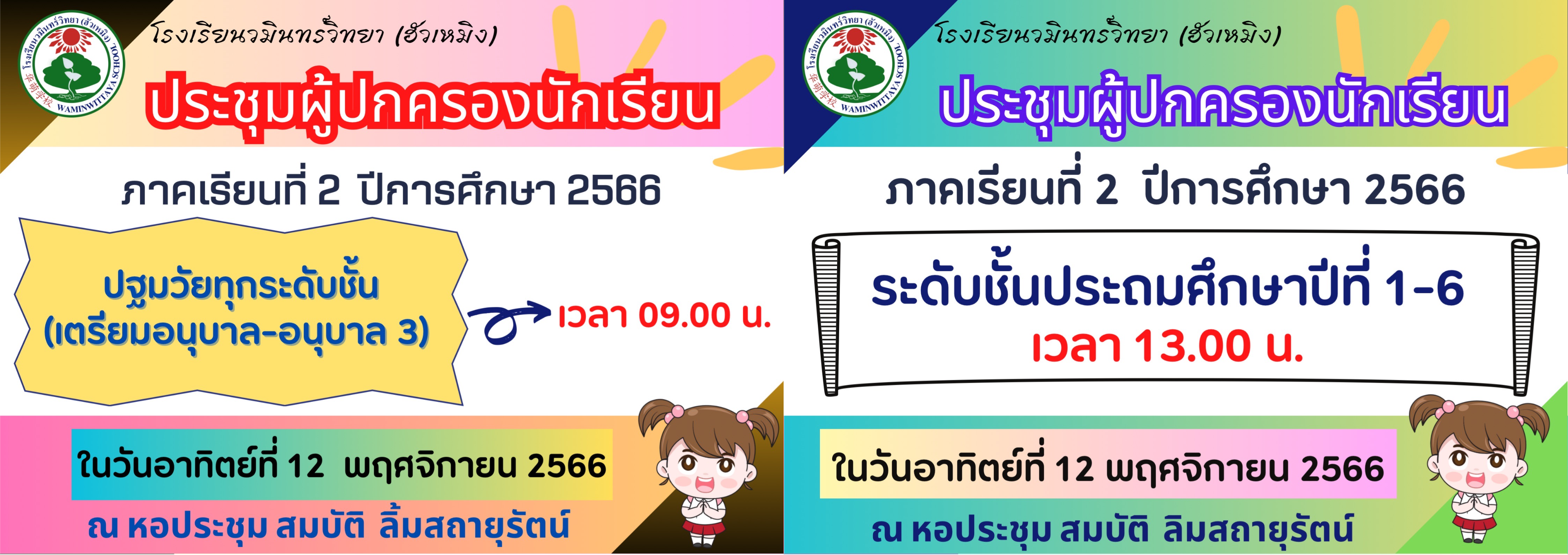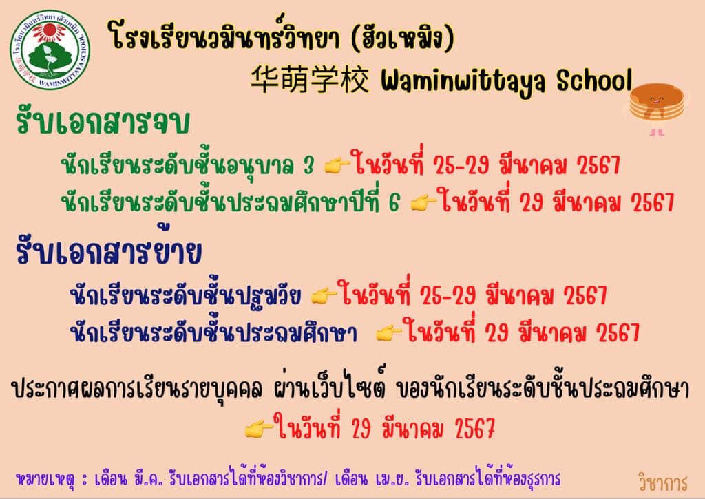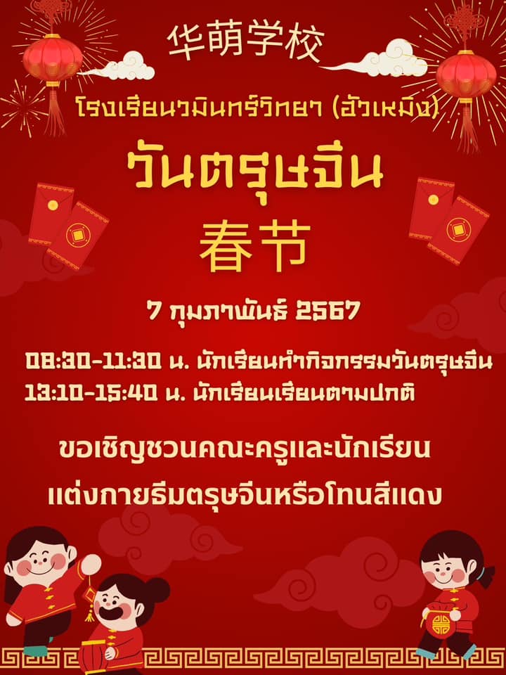 ประกาศจากโรงเรียนวมินทร์วิทยา (ฮัวเหมิง)..