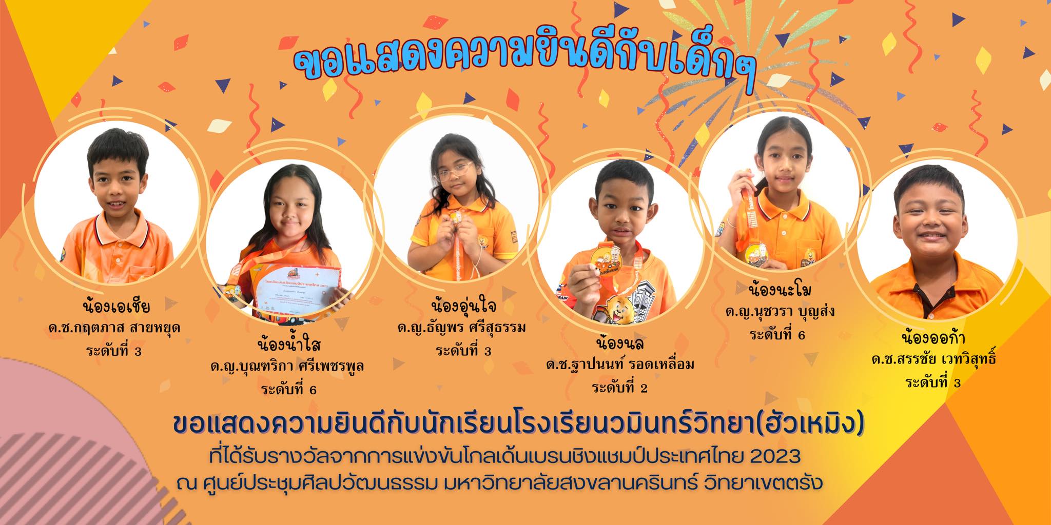 โรงเรียนวมินทร์วิทยา (ฮัวเหมิง) ขอแสดงความยินดีกับเด็กชายปภังกร ดวงแก้ว นักเรียนชั้นประถมศึกษาปีที่ 5/1 และเด็กหญิงนุชวรา บุญส่ง เด็กหญิงบุณฑริกา ศรีเพชรพูล นักเรียนชั้นประถมศึกษาปีที่ 4/1