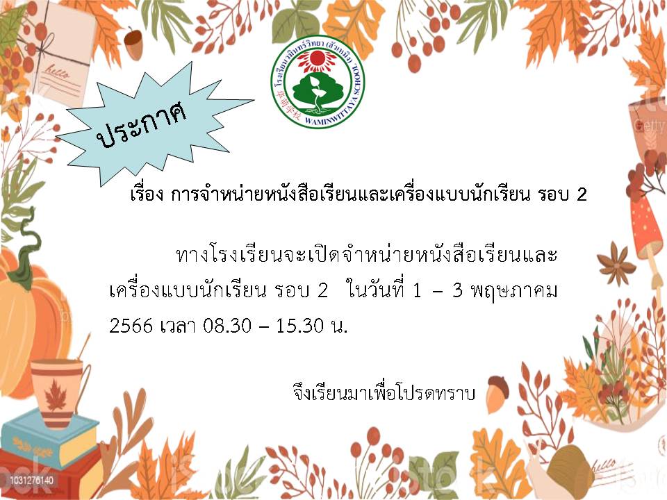 ประกาศ เรื่อง การจำหน่ายหนังสือเรียนและเครื่องแบบนักเรียน รอบ 2