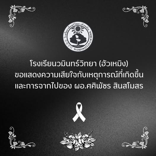 โรงเรียนวมินทร์วิทยา (ฮัวเหมิง) ขอแสดงความเสียใจกับเหตุการณ์ที่เกิดขึ้น และการจากไปของ ผอ.ศศิพัชร สินสโมสร