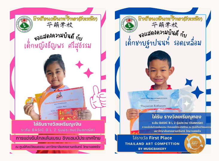 โรงเรียนวมินทร์วิทยา (ฮัวเหมิง) ขอแสดงความยินดีกับนักเรียนเด็กหญิงธัญพร ศรีสุธรรม และ เด็กชายฐาปนนท์ รอดเหลื่อม นักเรียนชั้นประถมศึกษาปีที่ 2/1