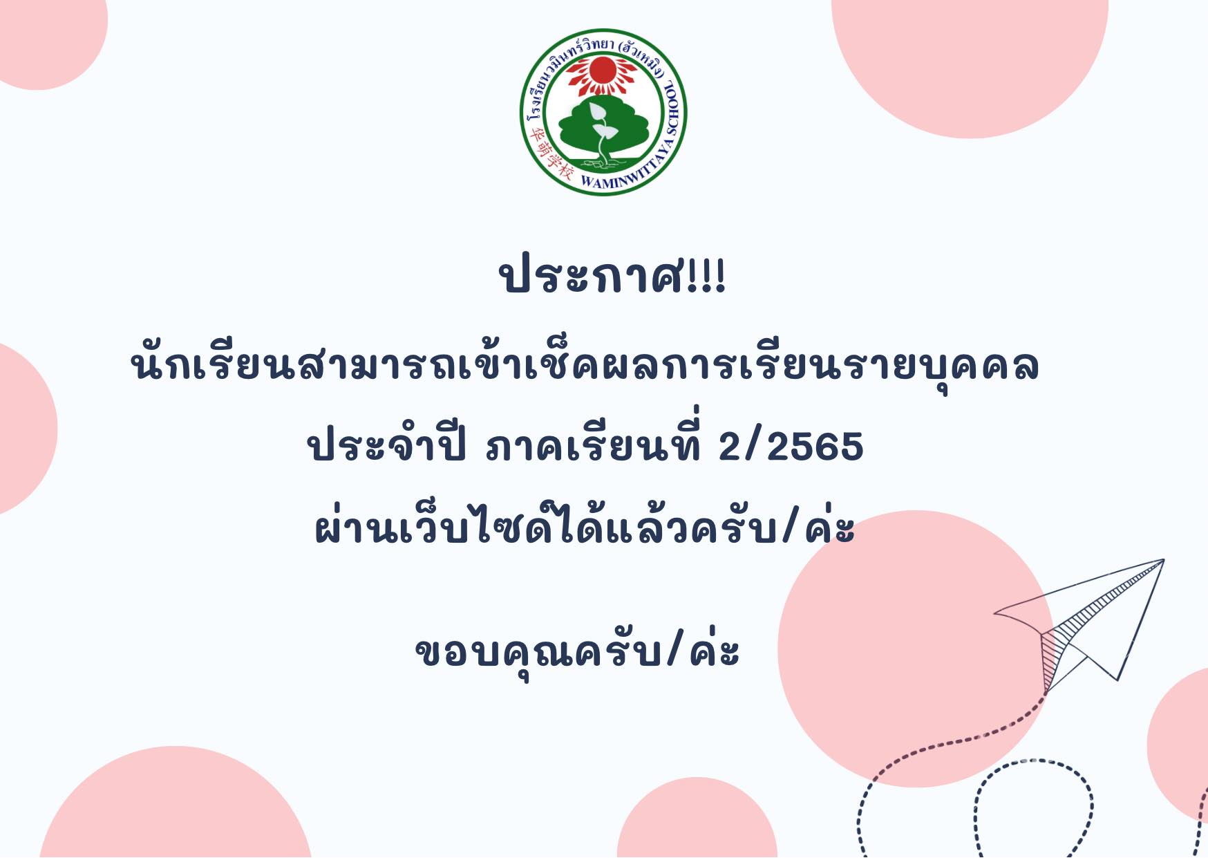 ประกาศผลการเรียนรายบุคคล ประจำปีภาคเรียนที่ 1/2565 !!!!!
