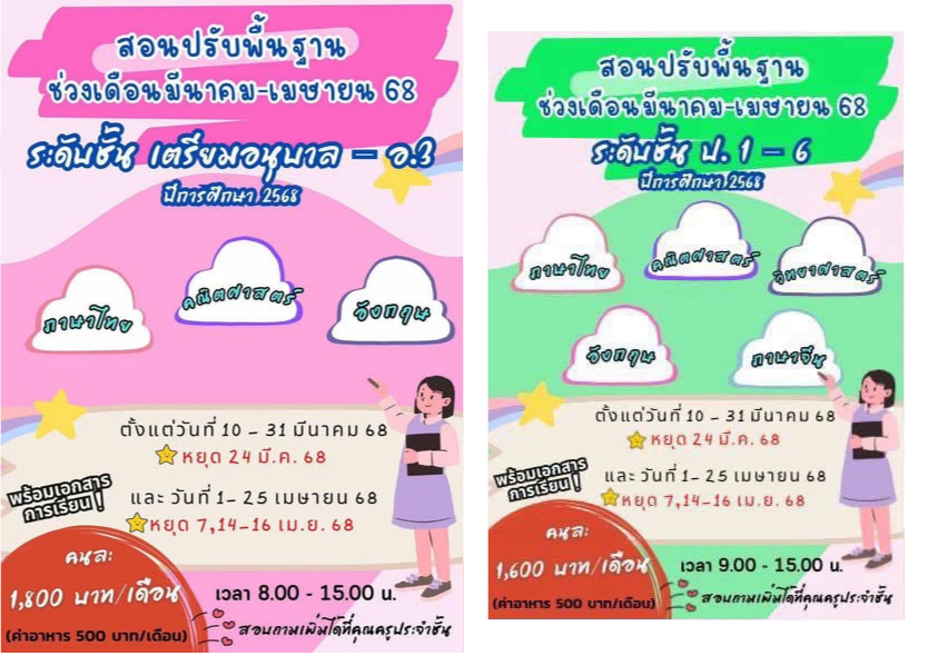 ประกาศการเรียนปรับพื้นฐานช่วงปิดเทอม ระดับปฐมวัย และระดับประถมศึกษา