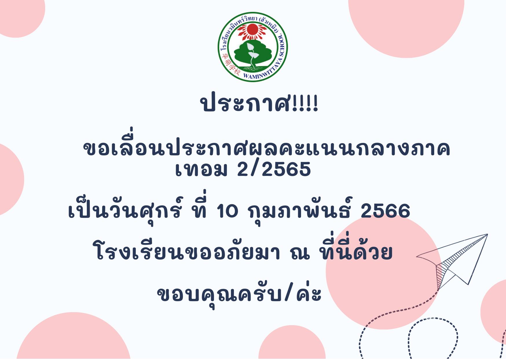 #ประกาศจากโรงเรียน เรื่อง ขอเลื่อนการประกาศผลคะแนนกลางภาค เทอม 2/2565