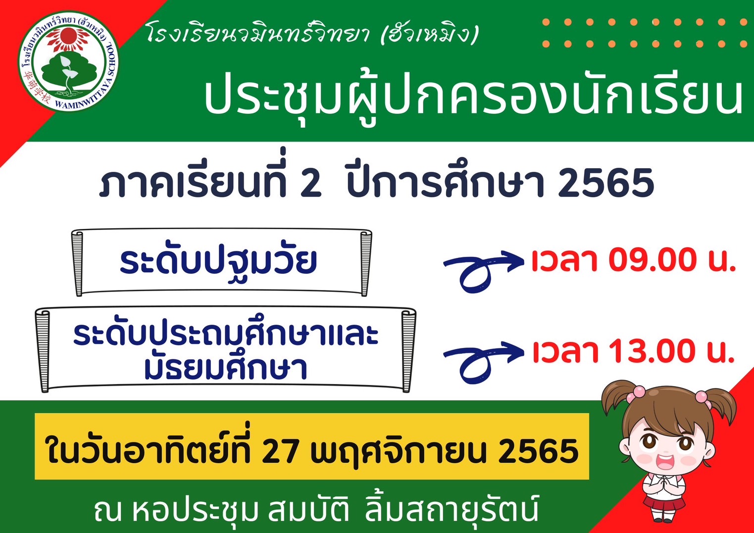 ประกาศ ประชุมผู้ปกครองนักเรียน ปีการศึกษา 2/2565